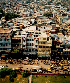 Pohlad do mraveniska ludi a uliciek z minaretu velkej mesity (Stare Dilli) |