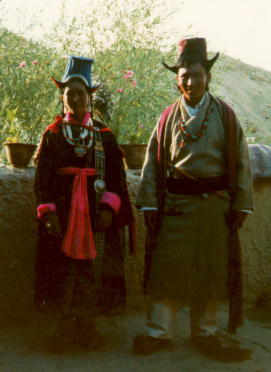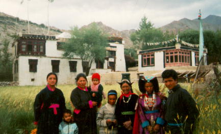 Tashi s matkou rodiny. Obleceni v tradicnom Ladackom kroji. Za chvilu pojdu nacvicovat tance dolu do dediny ( na folklorny festival) |