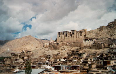 Leh,(Ladakh). Hlavne mesto byvaleho kralovstva. V pozadi kralovsky palac. Pod nim, je sucha cast mesta. |