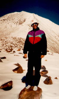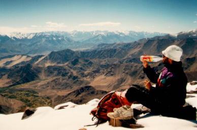 Najvyzsie som dosiel sem, dalej to neslo. Je to asi 5600-5700 m.n.m. Hoci sme 3 tyzdne aklimatizoavli aj tak som tu musel kvoli blbemu obutiu a snehu skackat z kamena na kamen, co sa obcas prejavilo po 4-5 skokoch videnim ciernych kruhov a pomohlo iba poriadne vydychanie. |